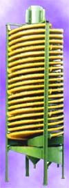 將螺旋溜槽立起,校準垂直線,用鐵架或木頭固定在合適的位置,由砂泵將礦砂送到螺旋上頂兩個進料口處,加入補充水,調節礦槳濃度,礦槳自然從高往下旋流,在旋轉的斜面流速中產生一種慣性的離心力,以礦砂的比重、粒度、形狀上的差異,通過旋流的重力和離心力的作用,將礦與砂分開,精礦流入精礦斗用管道接出,尾砂流進尾砂斗用管道接到砂池,再用砂泵排走,完成了選礦的全過程。